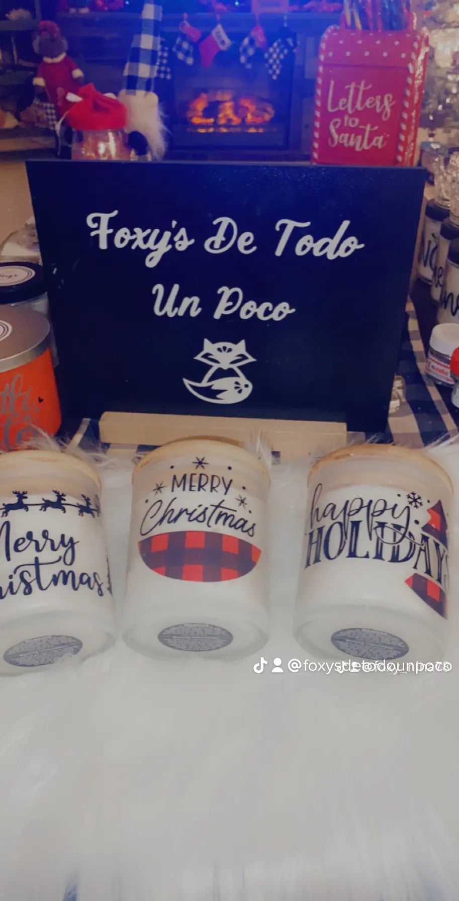 Vinyl décor (Pictures shown represent previously made custom orders can be made on any size glass candle jar sold on this website)