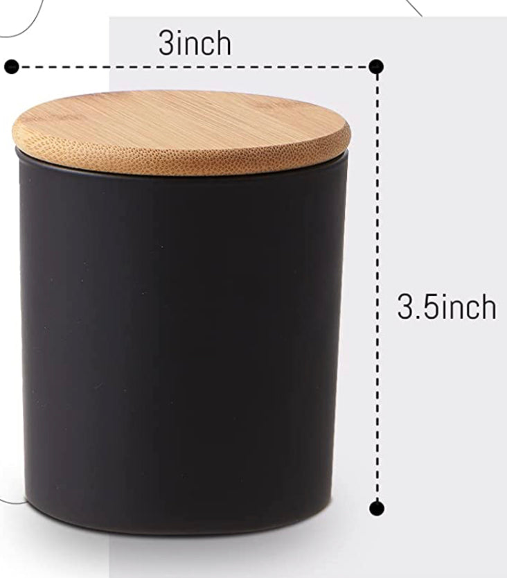 8 oz Filled Black Frosted Glass Jar (w/Bamboo Lid) 3.5" inches tall 3" in wide